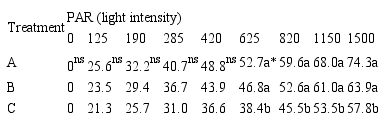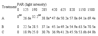 The measurements were adjusted using the equation ETR = ETRmax [1 – e ^ _kQ], where k is a fitting constant, and Q represents the light intensity (PAR), according to the methodology described by Rascher, Liebig and Lüttge (2000).