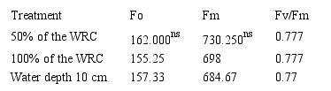 This stress is one of the factors that must have influenced the lower dry matter production of the aerial part of the plants, as well as the lower tillering under water depth (Table 3). According to Maxwell and Johnson (2000), as fluorescence is one of the ways of dissipating the absorbed light energy and the variations that occur in it, they can be measured to demonstrate changes in other ways of dissipation such as heat or photosynthesis, the values measured allow to demonstrate responses to stresses that these plants go through. In the case of hypoxia, this result may also be related to less nitrogen absorption, as well as by the accumulation of iron or manganese (toxicity) and gases such as carbon dioxide and ethylene.