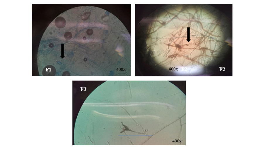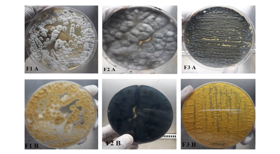 F1 and F3 were classified cultures of the genus Trichoderma, while F2 was classified as Penicillium.