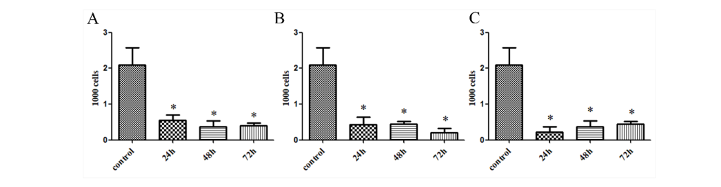 The mitotic index and histological data, expressed as the means ± standard deviation were evaluated for normality using the Kolmogorov-Smirnov test. The variation in the mitotic index was evaluated using a one-way Analysis of Variance (ANOVA) followed by Dunnett’s test for multiple comparisons. The histological data were also analyzed by a one-way ANOVA, followed by the Tukey test. A 5% significance level was considered in all analyses. The graphs were plotted in GraphPad Prism 5.
