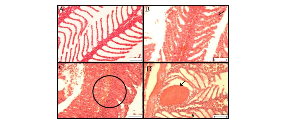 The analysis of the tissue of organs that come into direct contact with toxic agents, such as the gills, or those that metabolize (liver) or excrete (kidneys) xenobiotic compounds can provide clear evidence of toxic effects (Lins, Kirschnik, Queiroz, & Cirio, 2010). These histopathological indicators provide an important tool for the assessment of the health of fish (Schwaiger et al., 1997;Rašković et al., 2013;Samanta et al., 2018). Tabassum et al. (2016) for example, found significant alterations in the histology of the gills, kidney, and liver of Channa punctata (Bloch, 1793) specimens exposed to a fungicide (Propiconazol®) including primary and secondary atrophy and inflammation of the gill lamellae, hepatocyte degeneration, vacuolization, and necrotic renal tissue. The histopathological analysis of fish tissue thus permits the identification of early signs of disease, and contributes to the understanding of stress responses (Dane & Şişman, 2017).