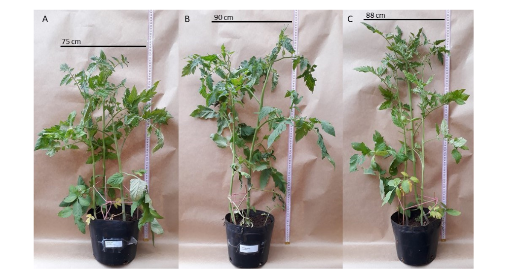 A Greenhouse experiment was performed at the Department of Agronomy at the Universidade Estadual de Maringá, state Paraná, Brazil. Santa Clara’s tomato seeds were surface-disinfected by immersing in 70 ethanol (2 min.), followed by 1 sodium hypochlorite (3 min.), and 70% ethanol (30 s), and then seeds were rinsed with autoclaved distilled water ten times.