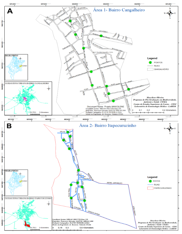 We would like to thank the Biodiversity, Environment and Health Graduate Program, and to the faculty for their contribution to our professional training, to the Fundação de Amparo à Pesquisa e Desenvolvimento Científico do Maranhão (FAPEMA) and the Coordenação de Aperfeiçoamento de Pessoal de Nível Superior (CAPES), for financing the projects that are carried out at the Laboratory of Medical Entomology – LABEM. To the Professor Juliana Maria Trindade Bezerra for statistical analyses, to MSc. Flávio Teixeira Lima for producing the maps used in this study.
