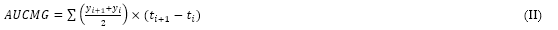 Statistical analysis was performed by calculating the mycelial growth velocity index (MGVI) and area under the mycelial growth curve (AUCMG). The MGI and the AUCMG was calculated according to the formula obtained by applying the formula proposed by Campbell and Madden (1990). The formulas are shown below (Equations I and II):