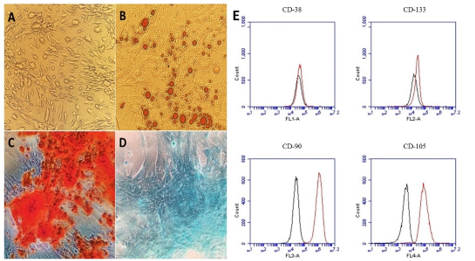 ADSCs expressed CD105 and CD90 markers, and did not express CD34 and CD133. Thus, the analysis of this immunophenotypic profile demonstrates that these are mesenchymal stem cells (Figure 2E).