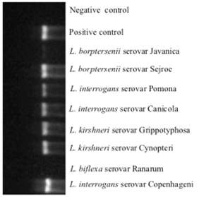 PCR analysis showed that the erpY-like gene is present in all pathogenic serovars tested (L. interrogans serovars Pomona, Canicola, and Copenhageni, L. borgpetersenii serovars Javanica and Sejroe, and L. kirschneri serovars Grippotyphosa and Cynopteri) and absent in saprophytic L. biflexa serovar Ranarum (Figure 1).
