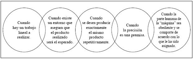 De acuerdo con Morgan (1986, p. 24), gracias al primer enfoque, centrado en los sistemas mecanicistas y formales de control, múltiples organizaciones han logrado un éxito espectacular. Esto dado que las condiciones, en su momento, eran óptimas para ello. Estas condiciones se representan en la figura 1.