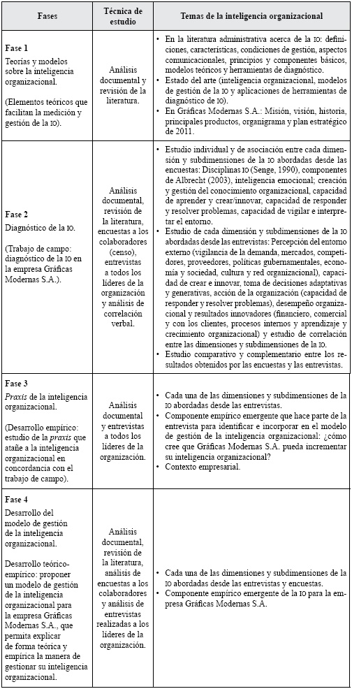 Las cuatro fases realizadas para llevar a cabo la investigación se presentan de manera sintética en la siguiente tabla: