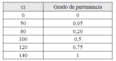Siguiendo este orden de ideas, es posible asignar valores a cada una de las categorías a evaluar dentro del proceso de selección de personal, particularmente en la decisión (ver tabla 1). Es importante señalar que, considerando los planteamientos de Zadeh (1965), los valores asignados correspondientes a un cierto grado de pertenencia seguirían un contínuum, de manera que la especificidad en la asignación de valores depende de los objetivos que tienen en la selección.