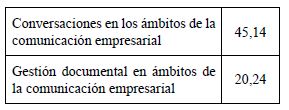 En la versión 10, este componente está orientado a medir dos grandes variables fundamentales para la gestión de la comunicación e información: 1) conversaciones en los ámbitos de la comunicación empresarial, y 2) gestión documental (tabla 4). Estas se hacen visibles en el uso del lenguaje, de los medios de comunicación y en las actuaciones empresariales (G3Pymes, 2013).