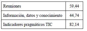 En la versión 9D, el componente está orientado a medir tres variables: 1) reuniones; 2) registro de datos, y 3) creación y transmisión de conocimientos (tabla 5). En reuniones se evalúa la manera como la organización administra su información de valor entre sus propios miembros, cómo se distribuye esta información, el acceso a la misma y la capacidad de transmisión de datos significativos (G3Pymes, 2009).