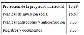 En la v9, este elemento examina las políticas relacionadas con la inversión social, antisoborno y anticorrupción y protección de la propiedad intelectual (tabla 7). Asimismo, se considera lo relacionado con los registros y documentos que sirven de soporte al sistema para evaluar su implementación (G3Pymes, 2009).