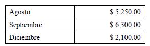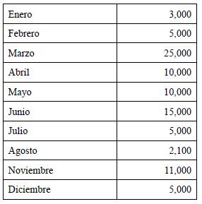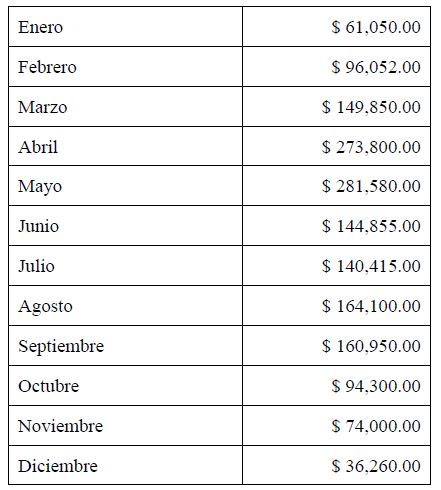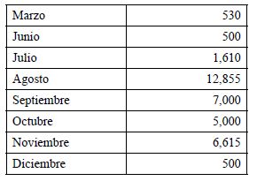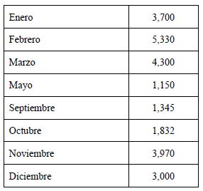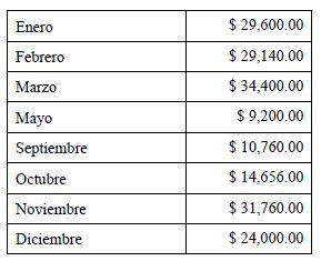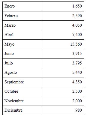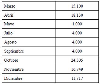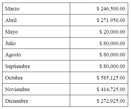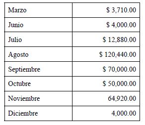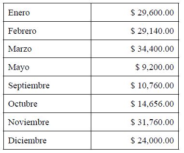 Durante todo el año, en la oficina de La Paz se reportaron $329.950. Un 93% se obtuvo en los meses de agosto a noviembre (tabla 15).