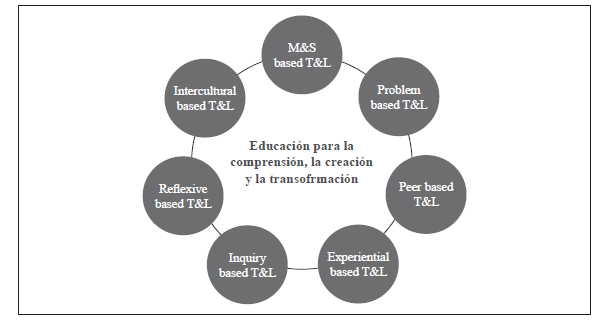 La característica común más importante es que todas se enmarcan dentro de lo que puede denominarse como aprendizaje activo, que resalta el papel del compromiso del estudiante (Prince, 2004), quien desarrolla actividades que lo hacen reflexionar sobre las ideas y su uso (Collins & O’Brien, 2003). Estos elementos implican una redefinición de su rol en el proceso de aprendizaje, así como del desempeñado por el maestro, en lo relativo a sus concepciones, métodos y estrategias de enseñanza. Es importante resaltar que el estudiante puede ser activo tanto en el salón de clase como fuera de él, por lo cual debe trabajarse en el desarrollo de espacios de aprendizaje diversos y enriquecedores; su uso en el campo del management ha sido resaltado por importantes trabajos como el de Mintzberg (2005), donde se reflexiona sobre la educación en los MBA.