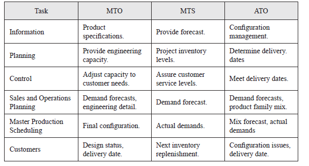 Some new concepts emerged as consequence of mass customization realization. Vollmann, Berry, Whybark & Jacobs (2004) categorize different production strategies concerning mass customization. ‘Make-to-Order’ products (MTO) is the term used to define the products that were made under the needs of a specific customer. ‘Make-to-Stock’ (MTS) and Assemble-to-Order (ATO) products can be drawn from table 4.
