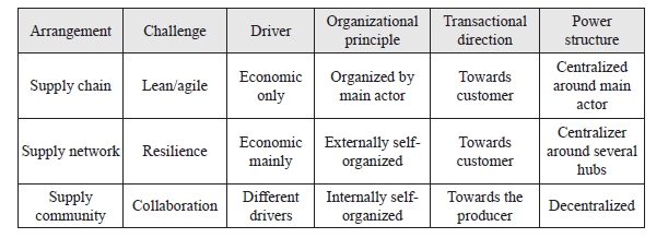 It is important to recognize the existence of alternative ways to organize MBs participation in supply arrangements. Three of these have been presented in this document: supply chains, supply networks and supply communities.