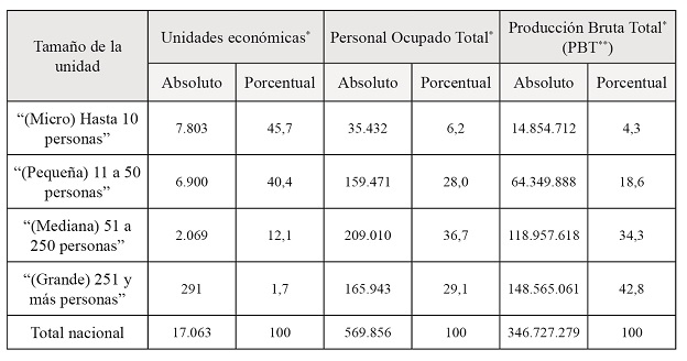 Se realizó la estratificación de la muestra atendiendo a los criterios establecidos por el Instituto Nacional de Estadística y Geografía (INEGI) para el tamaño de establecimiento por personal ocupado en: 1) Micro (Hasta 10 personas), 2) Pequeña (11 a 50 personas), 3) Mediana (51 a 250 personas) y 4) Grande (251 y más personas) (INEGI, 2015d).