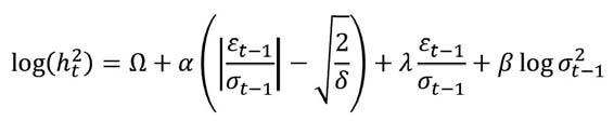 The relationship between the stock return volatility and the sign of stock returns is also one of interest. It is argued by Engle and Ng (1993) thatthe stock returns and the volatility have an inverse relation, i.e. when one decreases the other increases and vice versa. The phenomenon defined above is called “leverage effect”. It may be modeled by the asymmetric volatility model or egarchmodel and is given as: