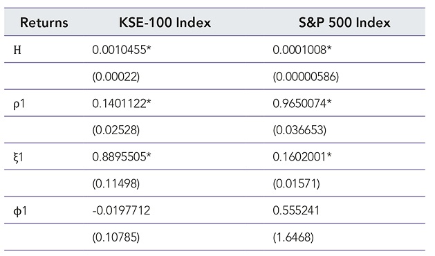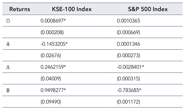 H1: There exists the volatility spillover effect between the S&P500 and the KSE100 indexes.