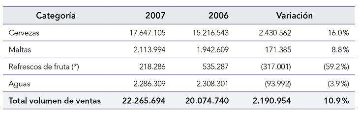 (*) Hls vendidos hasta el 31 de mayo del 2007. https://www.grupobavaria.com/pdfs/esp/informeanual07.pdf