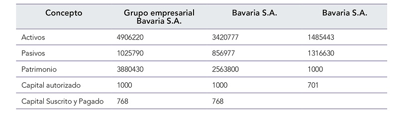 Desde su creación en 1889, Bavaria empezó su integración vertical mediante la producción directa o indirecta de cebada, la fabricación de botellas con la Vidriera Fenicia y la adquisición de la mina de carbón de Zipacón. Hacia 1930 se presentó una importante transformación organizativa de la empresa, al convertirse en Consorcio de Cervecería Bavaria S.A., proceso de concentración y centralización del capital producto de la unión de varias empresas. En 1934 el consorcio contaba con ocho plantas cerveceras distribuidas en siete ciudades, que cubrían estratégicamente el centro y el norte del mercado interno colombiano.11