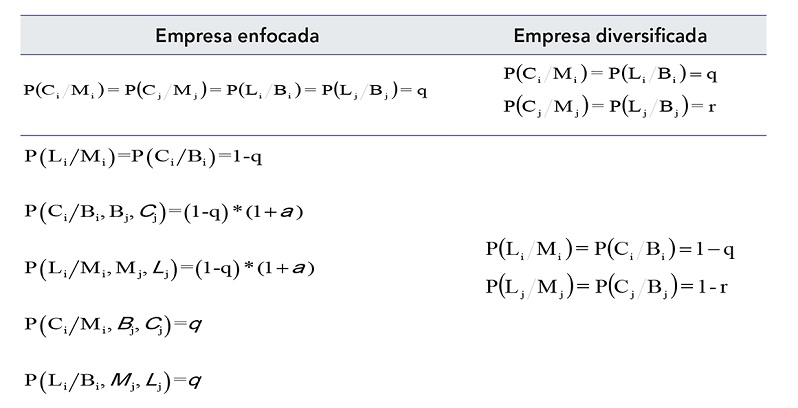 La rentabilidad de la corporación en un determinado periodo está basada en el juicio del gerente corporativo, quien toma como base sus creencias acerca del estado de la naturaleza, para una determinada unidad de negocio y decide el monto de la inversión. El nivel de correlación entre estos errores de juicio sobre los niveles de inversión está determinado por el nivel de diversificación entre las unidades de negocio, de tal forma que si existe foco, el error cometido al determinar el nivel de inversión en una unidad de negocio se propagará a las otras con su mismo objeto de negocio. Para incluir la argumentación anterior en el modelo diremos que:3