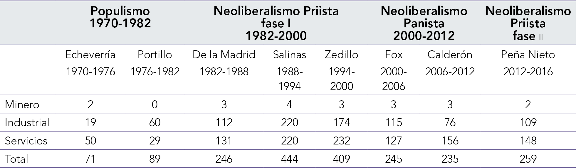 Finalmente, la tabla 4b muestra el análisis de cuatro fases históricas y por periodo presidencial, así como los aspectos más relevantes que se dieron durante la etapa conocida en México como Populismo (1970-1982), Neoliberalismo Priista Fase I (1982-2000), Neoliberalismo Panista (2000-2012) y Neoliberalismo Priista Fase II (2012-2016).