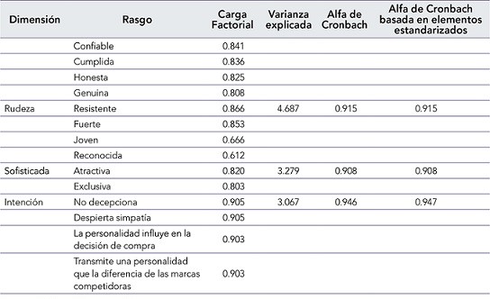 Para finalizar, la dimensión “rudeza” se relaciona con la percepción de fuerza y grado de resistencia; en el contexto empresarial puede llegar a ser relacionado con su infraestructura y posicionamiento, al ser una marca que lleva un largo tiempo en el mercado. A diferencia de las dimensiones anteriores, esta dimensión presenta la menor frecuencia absoluta (38.8 %) (Escobar-Farfán, Mateluna et al., 2016). Según Hernani (2008), esta dimensión es observable mediante sus rasgos y no en una dimensión como tal. Por ejemplo, algunos estudios relacionan la rudeza con masculinidad, mientras que otros la relacionan con aspectos como la valentía, robustez y masculinidad. No obstante, también puede llegar a ser asociada con rasgos de agresividad y conflicto (Araya-Castillo & Etchebarne, 2014). Es así como estudios relacionados sobre la personalidad de marca, bajo el modelo propuesto por Aaker (1997), según la tabla 1, generan una importancia para definir los rasgos de cada dimensión en la investigación.