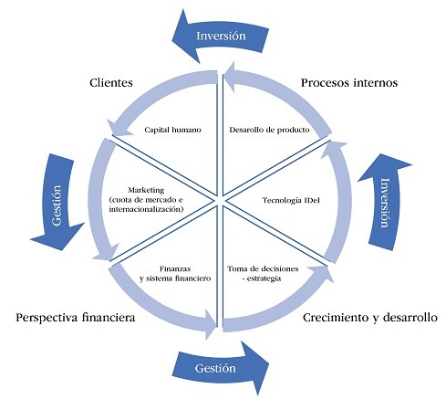 Como apoyo a la gestión, el cuadro de mando integral, propuesto por Kaplan y Norton (1996), plantea una estrategia basada en objetivos e indicadores, desde el área financiera, incorporando las perspectivas de clientes, procesos internos y el crecimiento a través del desarrollo innovador.
