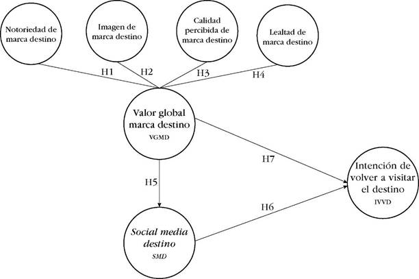 La literatura también menciona que los consumidores prefieren repetir su experiencia de consumo con aquellas marcas con las que han tenido experiencias placenteras en el pasado. Por lo tanto, los turistas optan por volver a los destinos cuando perciben un valor de marca alto (Rambocas et al., 2018; Otero & Giraldo, 2019). En consecuencia, al aumentar el valor de marca, crece la intención de visitar nuevamente el destino (Washington et al., 2015; Rather, 2021). En razón a estos argumentos, se plantean las siguientes hipótesis: