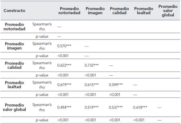 3.1. Correlaciones entre las dimensiones del valor de marca del destino