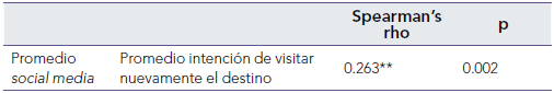La segunda asociación advierte sobre la influencia del social media durante el Covid-19 en la intención de visitar nuevamente Villavicencio. Los datos de la tabla 3 confirman la relación positiva entre estas variables, por lo que se acepta H6.