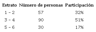Para el rango del estrato socioeconómico, en la tabla 6 se presenta que el 32% de las personas encuestadas pertenecen a los estratos 1 y 2, el 51% a los estratos 3 y 4, y el 17% pertenece a los estratos 5 y 6. Frente a la estratificación socioeconómica de la población de Cali, hay diferencias excepto para los estratos 5 y 6. La distribución de la ciudad está dada de la siguiente forma: el 53% de la población de la ciudad se encuentra en los estratos bajos, el 30.6% en los estratos medio bajo, 14.4% en estrato medio y medio alto, y el 1.9% de la población pertenece al estrato alto (Zapata & Raquejo, 2013).