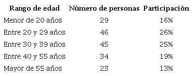En la tabla 8 se muestra la estadística básica del rango de edad. La mitad de los encuestados se encuentra en el rango entre los 20 y 39 años, mientras que una menor proporción de los encuestados superan los 55 años (13%), seguido de los menores de 20 años con el 16% y, finalmente, las personas entre 40 y 55 años con el 19% de participación.