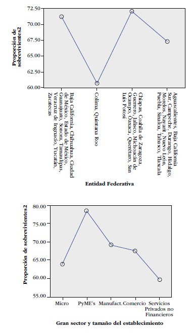 Como se destaca en el análisis descriptivo (Figuras 2 y 3), el comportamiento de los datos mostró un indicador de mayor cantidad de muertes que de nacimientos empresariales en el periodo analizado, lo que es indicativo de que las estrategias de sobrevivencia no fueron muy eficaces, por lo tanto se consolida el resultado producido por el modelo de regresión lineal que vincula la variable dependiente de sobrevivencia con las articulaciones características empresariales y estrategias implementadas para la sobrevivencia. A pesar de ello, resulta importante destacar que el esfuerzo de las mipymes en la aplicación de sus estrategias logró que el comportamiento estructural de la población en el 2021 tuviera la misma estructura final que la población inicial del 2018; es decir, el Estado de México tuvo mayor número de empresas que Colima, por ejemplo, y esto se mantuvo antes, durante y después de la pandemia. Se enfatiza que solo se perdió el 8 % de la población inicial del 2021, con lo que se llegó al 92 % con respecto al 2018 de todas las empresas tanto micro como pequeñas y medianas en todo el territorio nacional. Cabe señalar que en el caso de Chiapas, la cantidad de empresas fue del del 101 %, es decir nacieron y se mantuvieron sobrevivientes, más que las que desaparecieron en el periodo analizado de contingencia y pandemia.