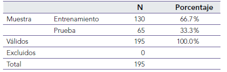 Una de las definiciones existentes de red neuronal es que se trata de un modelo matemático compuesto por un gran número de elementos procesales organizados en niveles. Un esquema general de una red neuronal es entrada-salida. Se aplicó un modelo de predicción de las variables del estudio con ayuda de las redes neuronales, el cual generó los siguientes resultados presentados en la Figura 7 (en este caso se procesaron 195 datos).