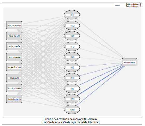 Finalmente, mediante el uso de redes neuronales y desde el análisis de la sinapsis se explica que hubo un cambio en las empresas que sobrevivieron; es decir, que existe un aprendizaje organizacional desde la idea de la ecología de la población empresarial y la adaptación mediante estrategias en el uso de recursos tecnológicos. Sin embargo, este aprendizaje bajo un entorno turbulento como la pandemia y la crisis de las cadenas de suministro debería de ser estudiado en el periodo postpandemia. Un último elemento a destacar es que a diferencia de lo que establece la teoría de la contingencia con respecto de la estrategia ganadora, la realidad mostró en los datos y, con respecto de las empresas micro y pymes en México, que esta funcionó de forma adversa o contraria; aunque quizá (y ese sería otra posible veta de análisis futuro) valdría la pena estudiar las nuevas empresas que surgieron y sobrevivieron o lo siguen haciendo a través del uso de redes, ventas en línea y las nuevas tecnologías como la inteligencia artificial aplicada a los negocios.