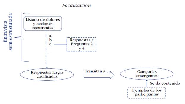 En esta se acudió al grupo focal porque, a través del debate, los mismos participantes pueden validar lo que las fases anteriores arrojaron. En otras palabras, si la focalización había construido unas categorías emergentes (como el denominado "mundo material"), en este momento era importante precisar qué se quería decir con ello. Adicionalmente, esta etapa examinó si efectivamente se podía considerar esa categoría como un analgésico organizacional, en el sentido de acciones encaminadas, desde la gerencia, a paliar y no necesariamente a atacar la causa del dolor.