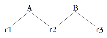 Se realizó el análisis con apoyo de Vosviewer, una herramienta informática que permite dar paso al mapeo científico o bibliométrico, fase esencial en el tema de la bibliometría, que es una representación visual y espacial sobre el análisis de cocitas como un modelo; es decir, "representan la relación de coocurrencia que se dá cuando dos ítems de la literatura son citados juntos por un tercero" (Miguel et al., 2007, p. 141). Las cocitas se presentan cuando dos documentos incluyen en la bibliografía las referencias de tres documentos, como se muestra en la Figura 3., donde se puede decir que r1 y r2 están cocitados, ya qué ambos se encuentran en la bibliografía del documento A, aunque también r2 y r3 están cocitados en el documento B (Marshakova, 1973; Small, 1973; Spinak, 2001).