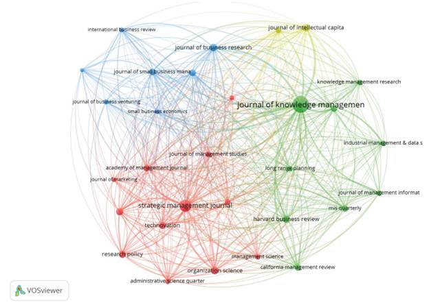 Key findings: As a result of the analysis, it was possible to identify growth in the last ten years in the productivity of scientific journals that address KM. Much of the productivity was generated in industrialized countries, with the United Kingdom being the main producer, the same occurs with the ten most representative magazines. Conclusions: the most cited article did not coincide with the co-occurrence map on the 20 most co-cited research on KM and SMES.