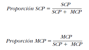 En correspondencia, se calculó la proporción de documentos publicados por autores de la misma nacionalidad (sep) y de diferente nacionalidad (MCP), el sep es el número de documentos que publican autores vinculados a una misma nacionalidad, y el MCP se refiere al número de documentos que publican autores vinculados a diferentes nacionalidades, para este cálculo se usan las siguientes ecuaciones: