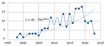 La literatura sobre la temática para en el periodo 1999-2023 se generó en coherencia con "el auge de la economía del conocimiento y la necesidad de las organizaciones por gestionar intangibles que permitan tener una ventaja competitiva" (Rodríguez-Montoya & Zerpa García, 2019, p. 180); 132 fuentes y 411 autores produjeron en dicho campo de investigación. La producción de documentos por países se sitúa principalmente en Estados Unidos (21), Rusia (19), Reino Unido (18), España (13), Rumania (11), China (10), Colombia y México (9 documentos cada uno), Italia (8) y Australia (6 documentos).