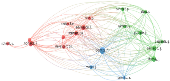 Uno de los autores estructurales desde el análisis de cocitación de los autores en la temática es Bontis (1998), quien ha producido los lineamientos para los modelos de medición en CI; adicionalmente realizó la revisión bibliográfica relativa a la evaluación de los activos de conocimiento como núcleo para la generación de un ventaja competitiva sostenible, que define como un campo del conocimiento floreciente a partir de la valoración de algunos modelos de medición de capital intelectual como Skandia, el IC-index, el technology bróker y el intangible asset monitor (Bontis, 2000). Por otra parte, se encuentra la articulación entre CI y gestión del conocimiento con Nonaka y Takeuchi (1995), quienes reconocen el conocimiento explícito y tácito, y dan prelación al segundo, el cual se encuentra contenido en el individuo que establece como punto de partida al capital humano, entre los componentes del CI (Egbu, 2004).