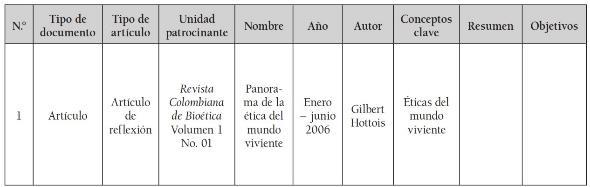 Análisis e interpretación de los resultados de investigación: Existieron dos momentos: primero la selección de la masa documental, su organización y depuración, y segundo el análisis y contrastación teórica, el cual permitió evidenciar tendencias, en la producción académica que se ha venido haciendo sobre bioética ambiental, a la luz de una fuente documental como la RCB.