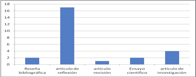 El cuadro 2 presenta la reiteración de los autores que publican sobre el tema y la figura 1 presenta el tipo de artículos publicados, según la clasificación de Colciencias. Enseguida se presenta la figura 2 sobre las tendencias de producción académica.