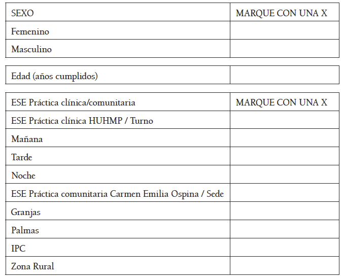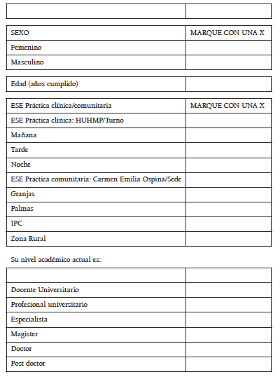 En las Consideraciones éticas del estudio se contempló el respeto a la autonomía tanto de los estudiantes en práctica, como de otros profesionales de la salud y la relación de los estudiantes con pacientes; de reserva y confidencialidad, de respeto a las diferencias y de manejo transparente de las técnicas aplicadas para obtener la información y presentar los resultados de forma codificada, preservando la identidad de los participantes. Hay que subrayar que el presente estudio fue una investigación de riesgo mínimo teniendo en cuenta la Resolución 8430 de 1993, puesto que se basó en el análisis documental, entrevistas y observación que pueden tener aspectos sensibles para algunos participantes. La información se manejó con responsabilidad, confidencialidad y veracidad. Para el desarrollo de las técnicas interactivas la investigadora aplicó el consentimiento informado para cada uno de los participantes con la explicación de los aspectos del proyecto relacionados con objetivos, financiación, afiliaciones institucionales y posibles conflictos. Cada participante fue informado del derecho de participar de la investigación y de retirarse cuando quisiera sin ningún problema. Las entrevistas se manejaron con códigos.