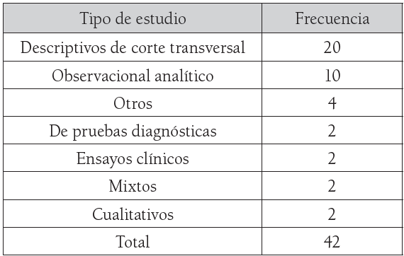 Los tipos de estudios evaluados se resumen en la tabla 1.
