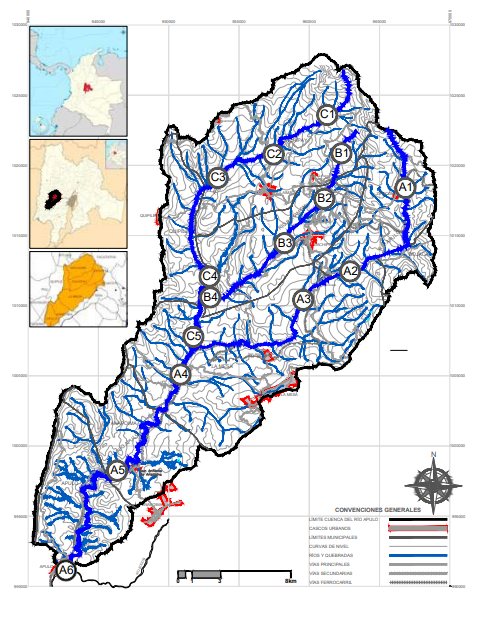 Cuenca hidrográfica del río Apulo. Estaciones de muestreo