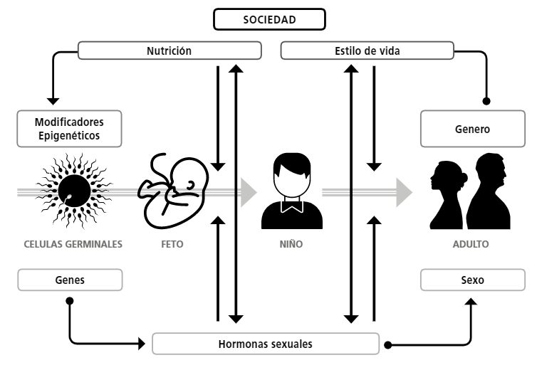El género, bajo estos argumentos, es entendido como “una construcción social con respecto a las convenciones, roles y comportamientos vinculados a la cultura, así como a las relaciones entre mujeres, hombres, niños y niñas”3(Krieger 2003). El sexo, a su vez, da cuenta de factores genéticos, hormonales y reproductivos. Por lo tanto, las diferentes expresiones del género varían constantemente y se diferencian de las relaciones biológicas entre el sexo y el género, especialmente en las sociedades, así como los diferentes procesos que tienen lugar en ellas.