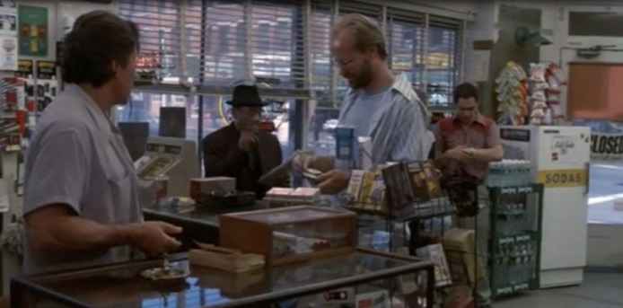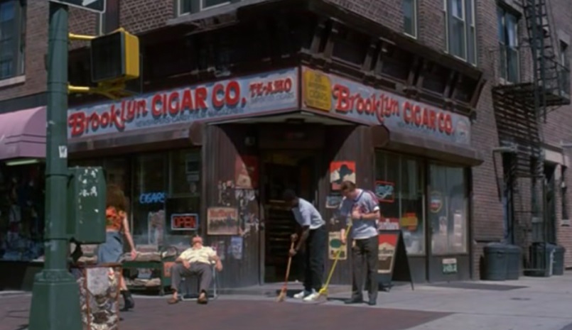 A ausência de padarias e de bancas de jornal, locais onde, por aqui, compra-se cigarro, institui a presença das tabacarias norte-americanas como estabelecimentos comerciais de rua. Nas cenas iniciais, dentro da tabacaria, Auggie Wren fala e os frequentadores escutam[2]. Ali são apresentados, ao mesmo tempo, o espaço e dinâmica das relações sociais do lugar.